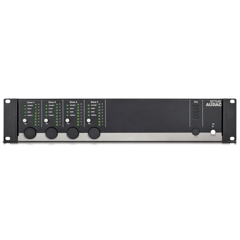 Der 4-Zonen-Verstärker AUMTX48 aus der AUMTX Serie verfügt über zwei symmetrische
