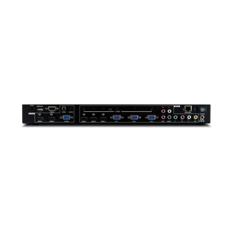 Zudem beinhaltet er eine 3D/2D-Konvertierungsmöglichkeit und lässt sich mittels Gerätetaste, IR-Fernbedienung, RS-232-Schnittstelle oder über einen Webbrowser und IP-Befehle steuern.