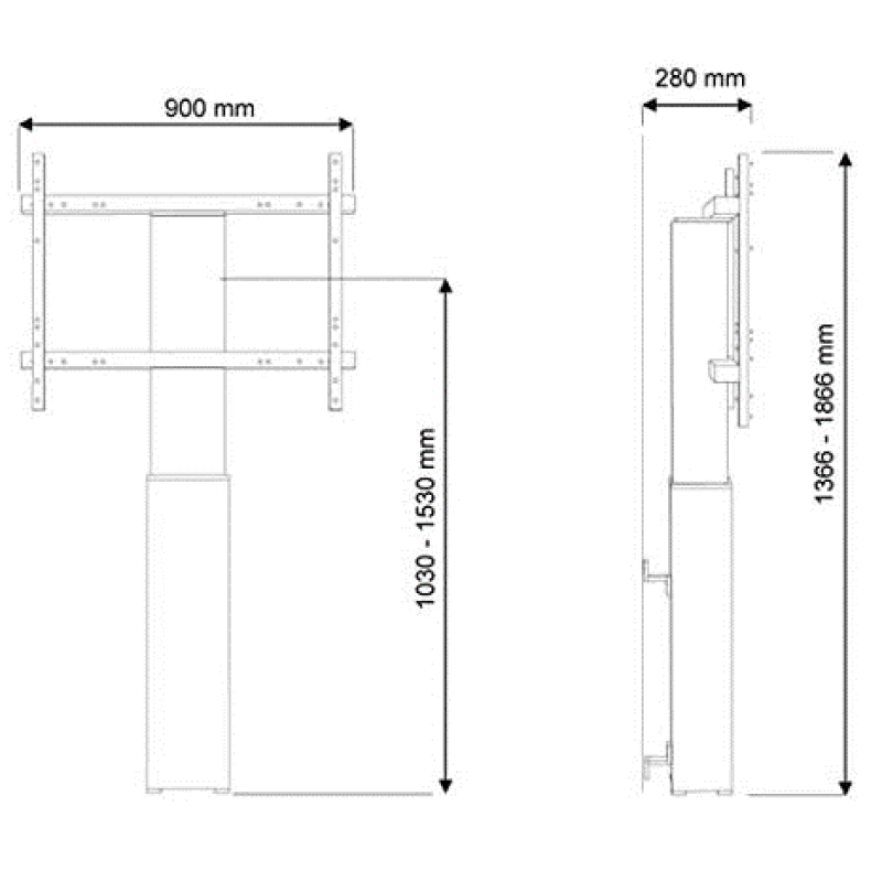 • Dieser elektrische Wandlift eignet sich für Bildschirme mit VESA Lochmustern von 200x200 bis 800x600 mm.