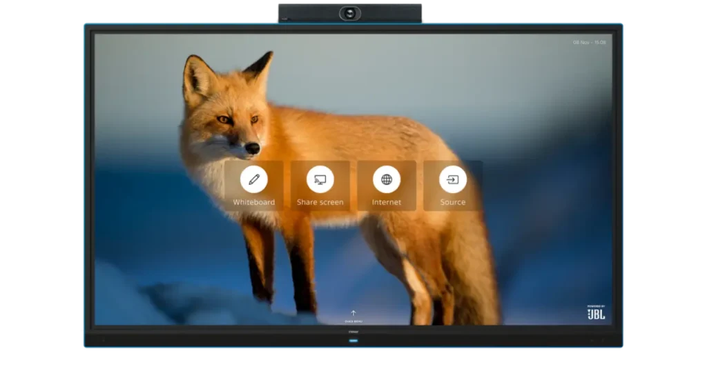 Recherchen haben gezeigt, dass es bei Touchscreens wirklich nur 4 Funktionen gibt, die regelmäßig genutzt werden. Warum sollte man mehr als nötig hinzufügen? Starte mit dem Whiteboard, drahtlosen Verbindungen, nutze den optionalen Web Browser oder wechsle die Eingangsquelle.
